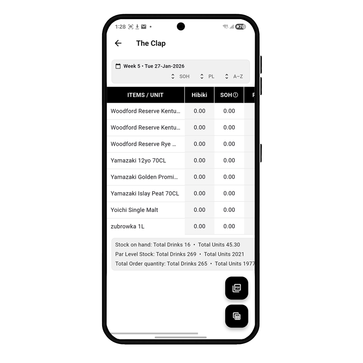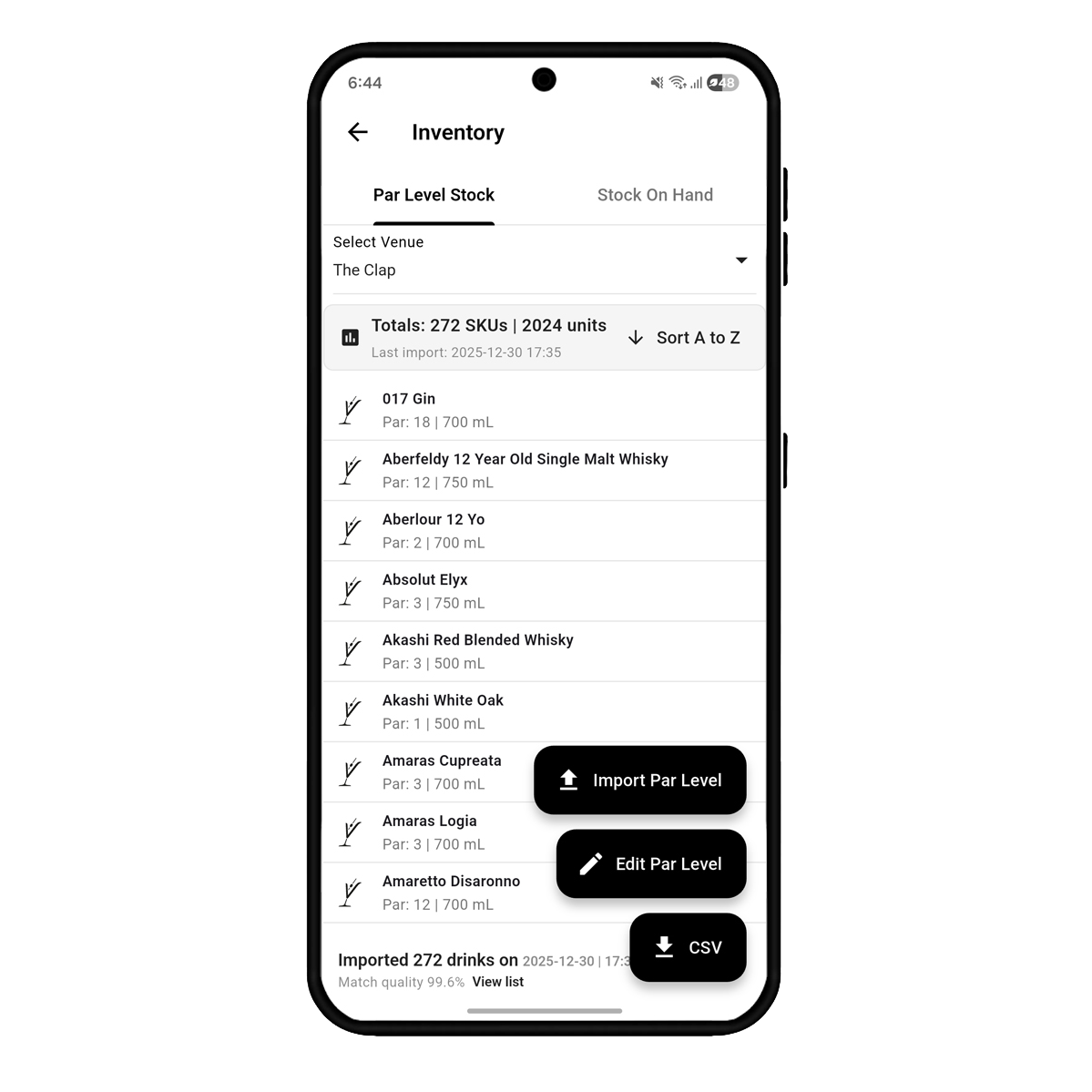 Set your par levels once. Barventory calculates Stock On Hand automatically. Update, adjust, and review anytime.